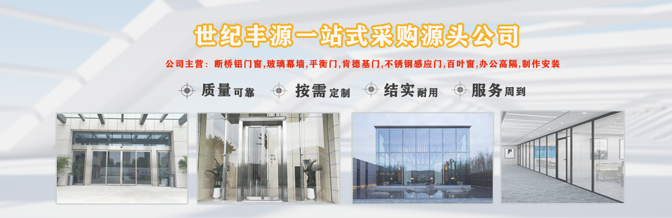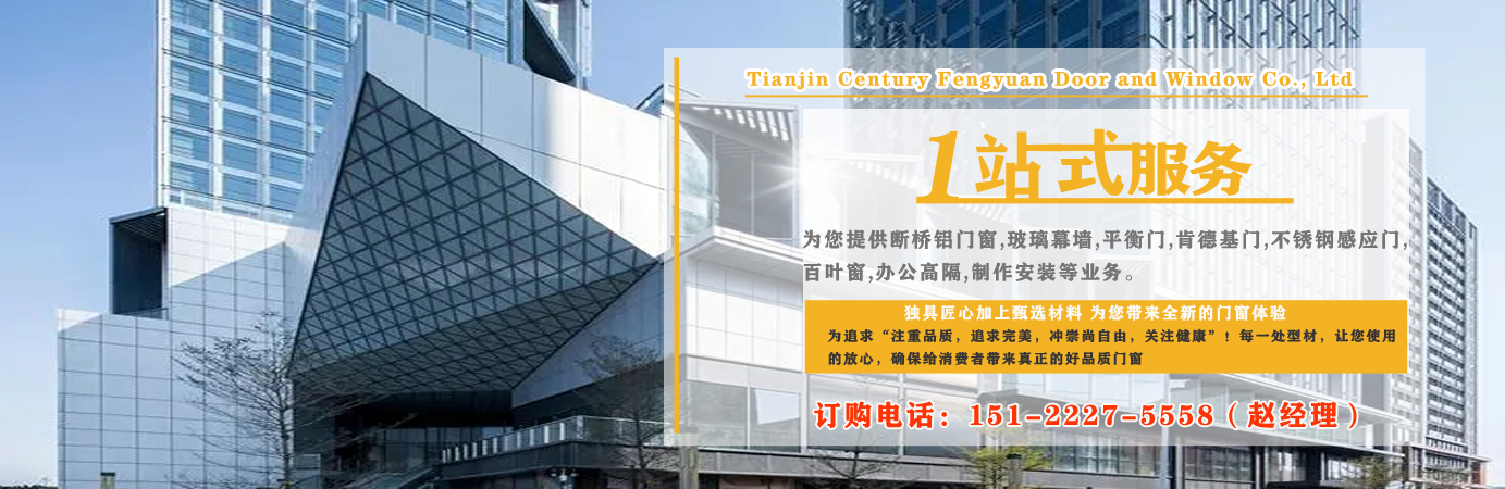 天津世紀豐源門窗有限公司從事斷橋鋁門窗,玻璃幕墻,平衡門,肯德基門,不銹鋼感應門,百葉窗,辦公高隔,制作安裝一站式訂制生產及配套服務等?! 」咀猿闪⒁詠?,始終堅持以人才為本、誠信立業(yè)的經營原則,薈萃業(yè)界精英,成熟的技術、管理方法及企業(yè)經驗與國內企業(yè)的具體實際相結合,為企業(yè)供給各個方面的解決方案,使企業(yè)在激烈的市場競爭中始終堅持競爭力,實現企業(yè)快速、穩(wěn)定地發(fā)展。 質量好、服務好、才能信譽好,公司已在諸多領域取得輝煌成績,愿意成為您可信賴的長期合作伙伴。 讓我們攜手同行,共同實現“讓普通老百姓都用得上高端門窗”...